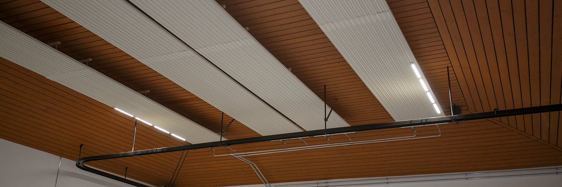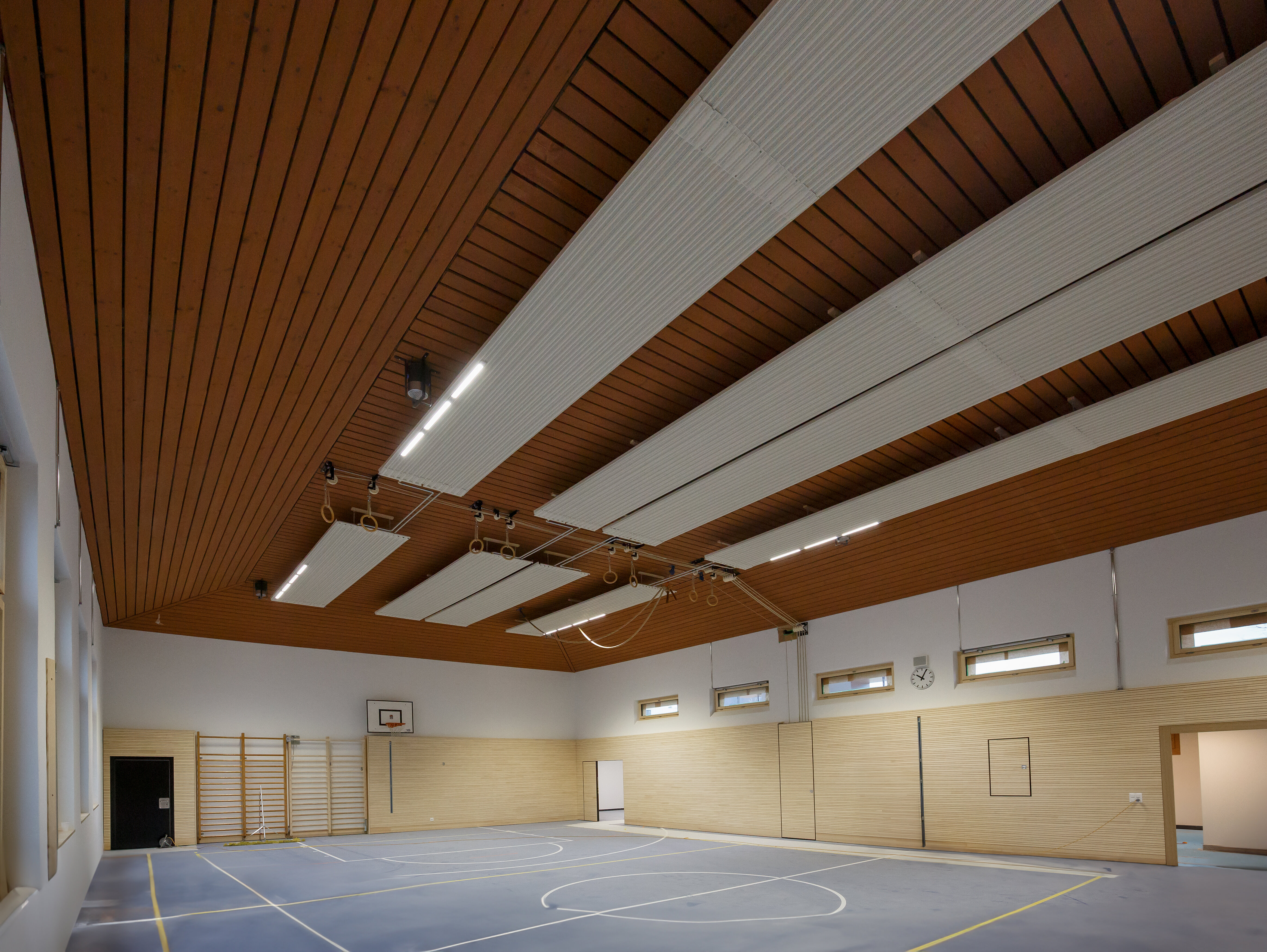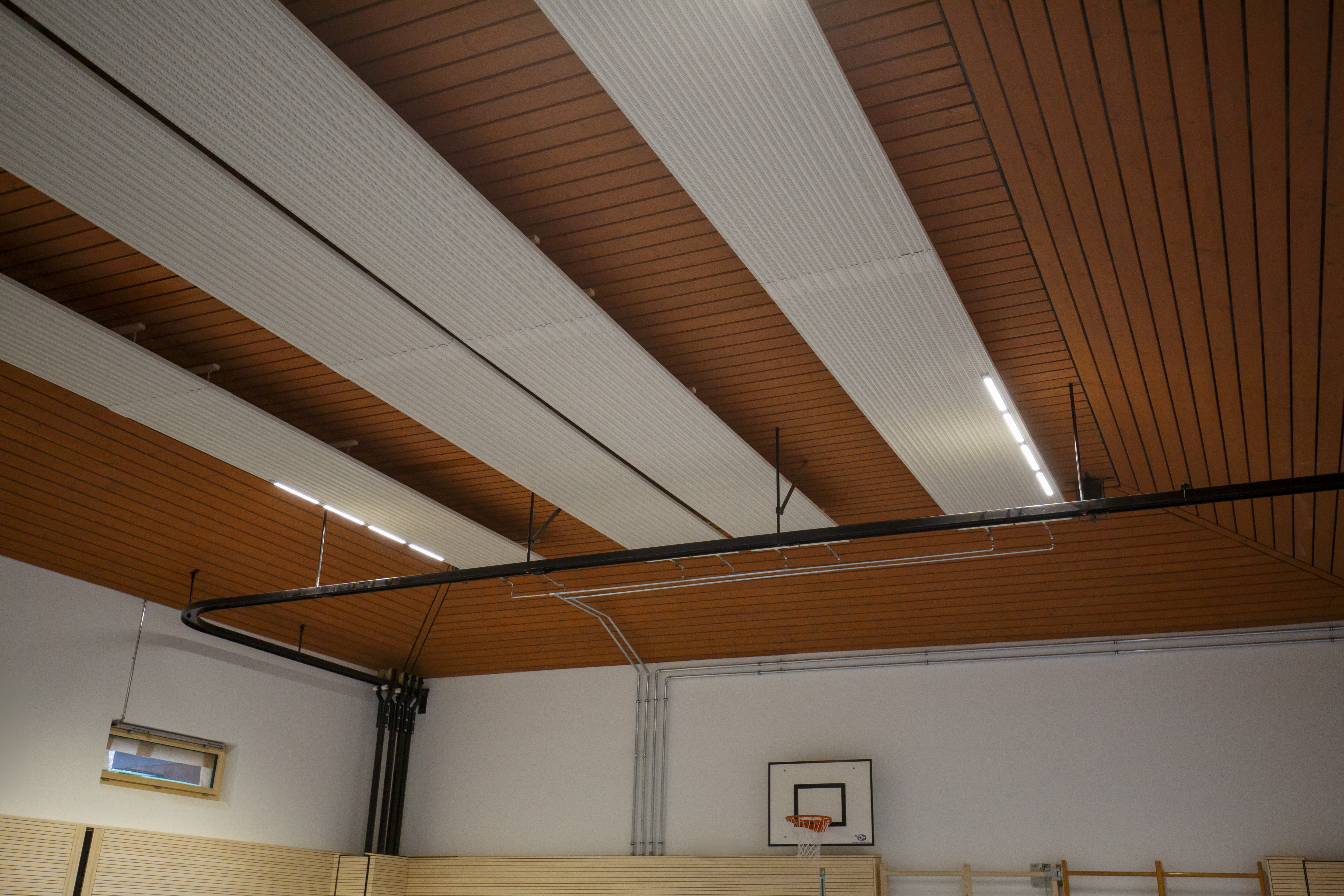 Die Sanierung der Turnhalle war mit einer umfassenden Erneuerung der Gebäudetechnik und der Verbesserung der Gebäudedämmung verbunden, soweit dies aus bauphysikalischer Sicht möglich und sinnvoll war. Um die gesteckten Ziele hinsichtlich Wärme, Beleuchtung, Sicherheit und Effizienz zu erreichen, hat sich die Bauherrschaft für die Deckenstrahlplatten von Zehnder entschieden.