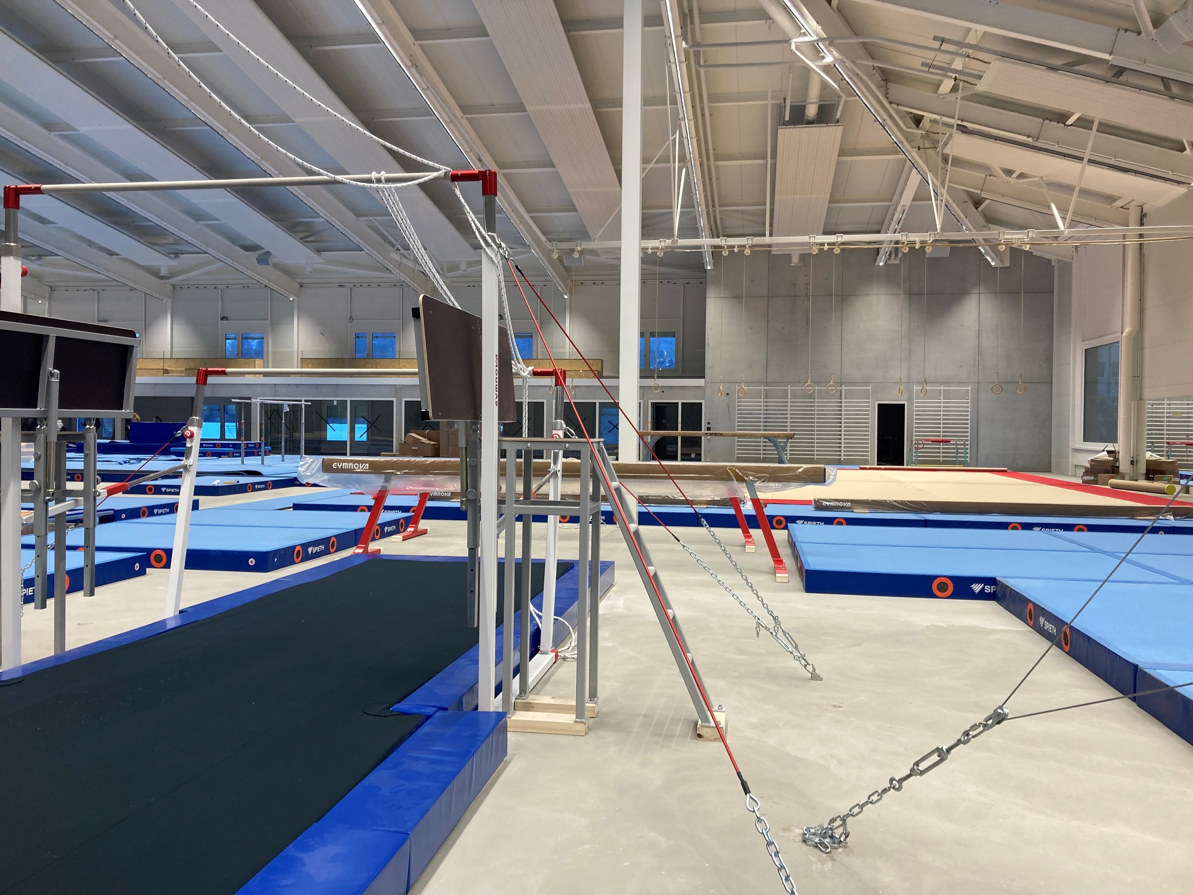 Zwischen Traitafina und Klettersporthalle in Lenzburg entstand im Jahr 2022 das neue Turnzentrum für den Aargau. Neben Tanz-, Kraft-, Physio- und Erholungsräumen, einem Schulzimmer für Förderunterricht und den Geschäftsräumen des ATV ist das Herzstück die Trainingshalle: 1900 Quadratmeter und bis zu 300 Tribünenplätze.
